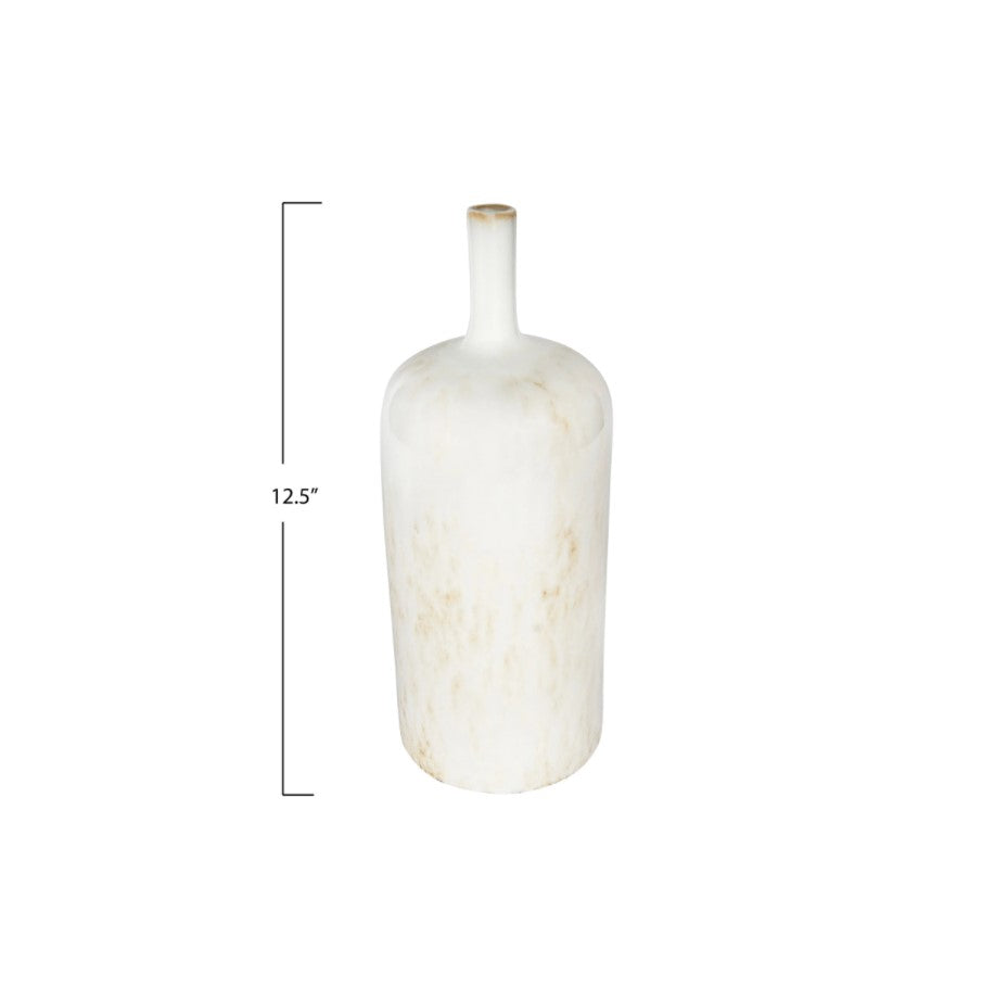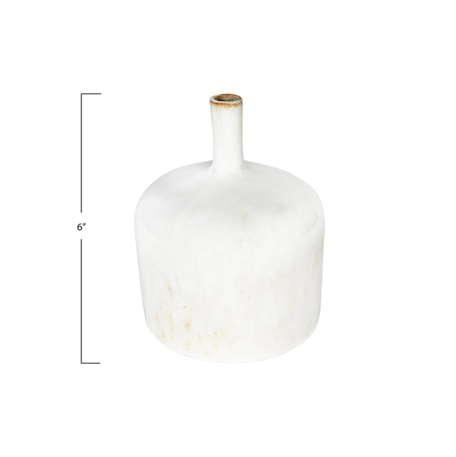 Add a decorative accent to a mantel, shelf or tabletop with this cream stoneware vase. Pair with a set of brown candle holders to match the brown that accents the bottom of the vase. Lay a long stem botanical across the front of said vase and candle holders for added decor. (Each One Will Vary)
